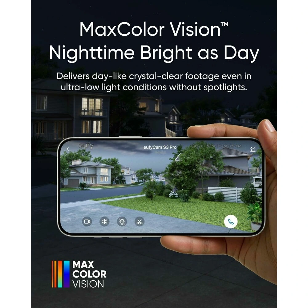 Смарт камера Eufy S3 Pro WiFi комплект 3 камери с HomeBase 3, 8MP, 4K UHD 3840×2160, Максимално цветно нощно виждане